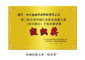 2011年獲得全國(guó)印刷行業(yè)職業(yè)技能大賽(四川賽區(qū))平版印刷初賽組織獎(jiǎng)